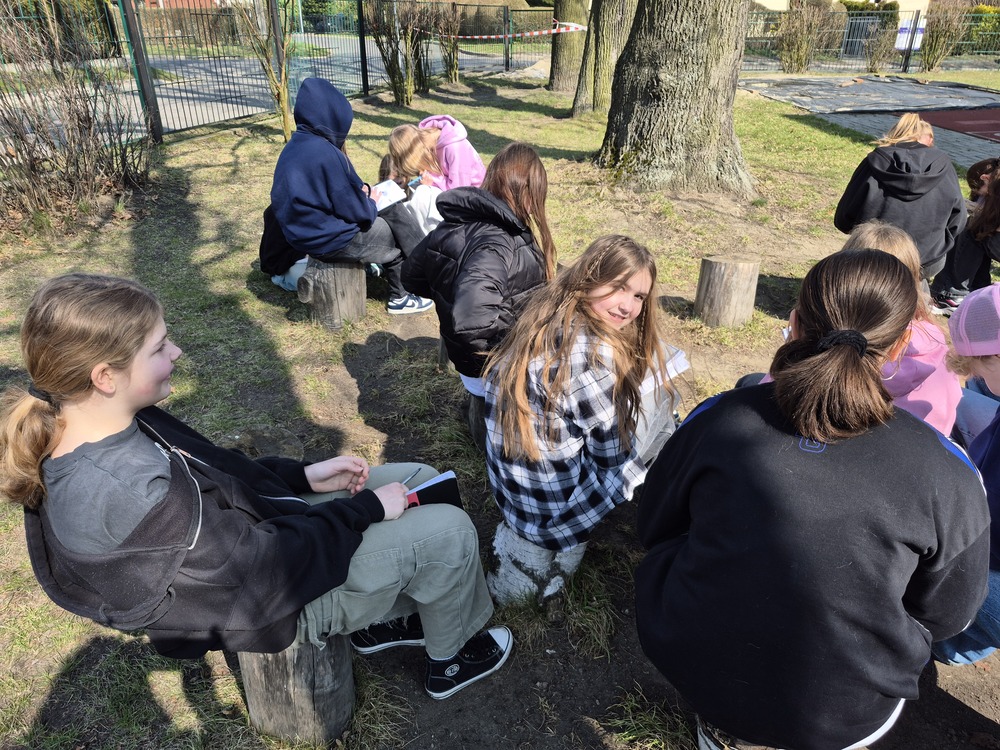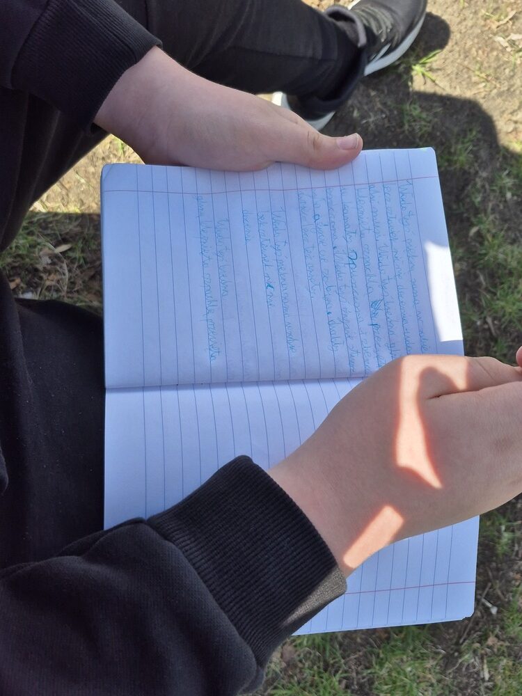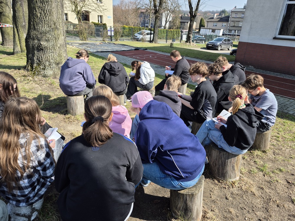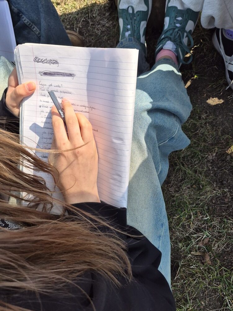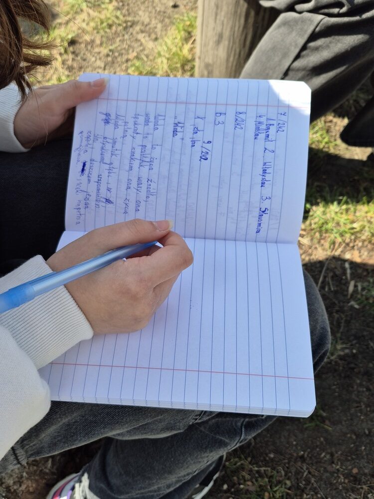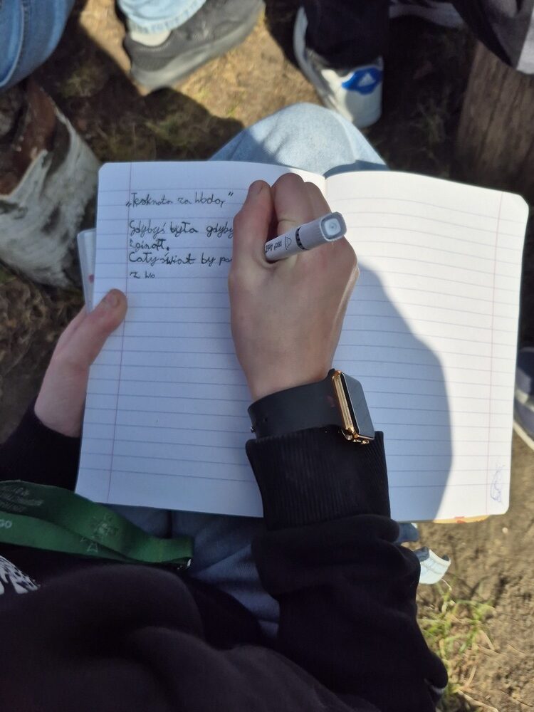 Uczennice i uczniowie klasy 7a wzięli udział w lekcji języka polskiego pod chmurką… aby napisać wiersze inspirowane wodą w naszej dzielnicy. Doświadczenia poetyckie zaowocowały całkiem pokaźnym zbiorem utworów!
